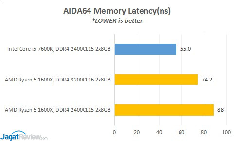AIDA64 Memory Benchmark sangat popular dipakai untuk menguji performa memori(RAM) secara singkat. Kami mengambil data dari performa Memory Read dan juga Memory Latency untuk mengetahui seberapa bagus performa RAM pada platform tertentu. Test ini dipengaruhi oleh seberapa efisien si memory controller pada sistem saat bekerja, lalu juga frekuensi kerja memori,dan tentunya latency/timing dari memori yang digunakan.