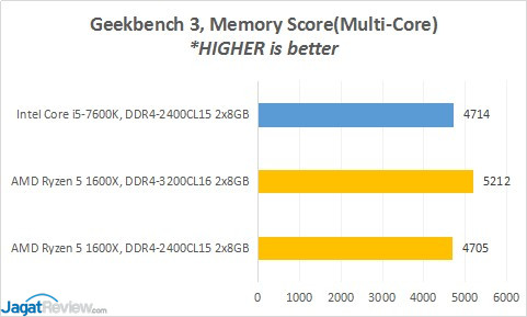 Geekbench 3 adalah sebuah benchmark singkat yang dapat mengukur kemampuan prosesor dalam menangani beberapa workload integer dan floating-point, sekaligus juga kemampuan memori yang terdapat dalam sistem. Data disajikan dalam bentuk skor, semakin besar semakin baik. Sudah ada update untuk benchmark ini yakni Geekbench 4, namun kami masih menggunakan Geekbench 3 karena ada memory score terpisah di sini. Kami mengambil skor Single-Core, Multi-Core, dan juga Memory Score(multi-core)-nya.