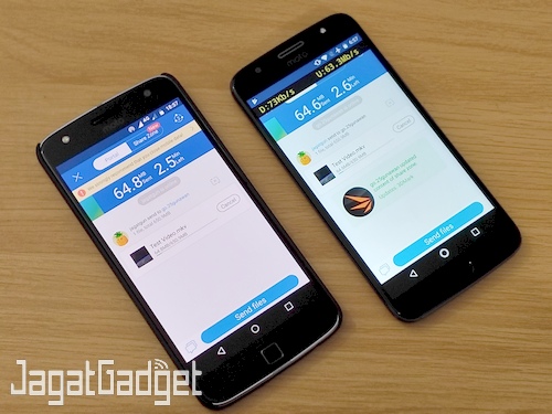 Kecepatan transfer file yang didukung SHAREit tentunya akan sesuai dengan kecepatan WiFi yang didukung perangkat. Berdasarkan pengujian yang kami lakukan, dengan menggunakan Moto Z Play dan Moto G5s Plus, kecepatan transfer tertinggi yang bisa kami dapatkan mencapai sekitar 65 Mbps. Kecepatan tersebut sudah hampir 3x lipat kecepatan transfer melalui Bluetooth.