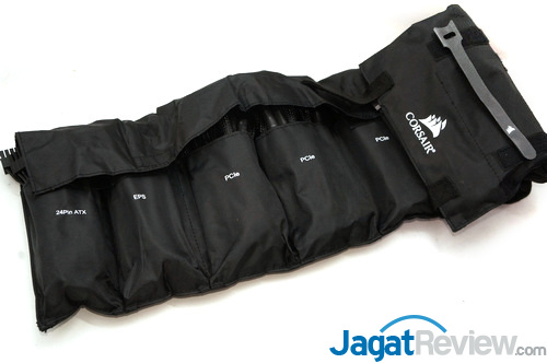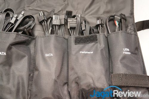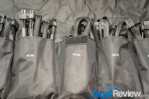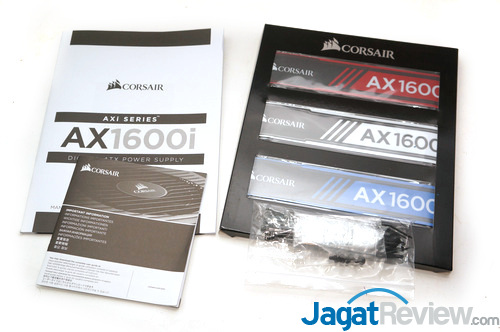 Kemasan AX1600i tentunya hadir dengan sejumlah kelengkapan ekstra layaknya produk premium. Selain kabel modular dan beberapa user manual, ada part menarik dimana si pengguna diberi kebebasan untuk memasang magnetic side label berwarna merah, biru, atau putih.