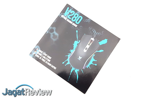 Produk yang diposisikan oleh Rapoo sebagai gaming mouse ini datang ke lab. Jagat Review beserta dengan paket penjualan lengkapnya. Kemasan yang digunakan oleh Rapoo untuk paket penjualan VPro V280 ini bisa dikatakan cukup sederhana, tetapi dengan desain yang menarik. Mereka menawarkan penutup bagian depan yang bisa dibuka, membuat mouse yang masih dibalut plastik pembungkusnya terlihat dari luar.