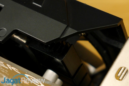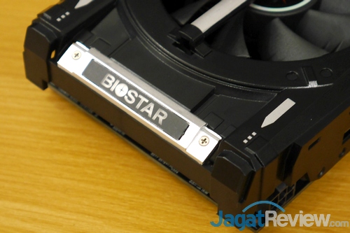 Heatsink yang digunakan Biostar GeForce GTX 1060 3GB ini terbuat dari bahan aluminum dan bewarna hitam. Heatsink bewarma hitam ini sangat jarang ditemukan pada graphics card kelas menengah. Heatsink bewarna hitam ini juga tidak hanya sekedar kosmetik belaka. Heatsink tersebut cukup tebal dan memiliki jumlah fin yang cukup banyak, bobotnya pun cukup berat, dan seperti yang kami deskripsikan di atas, apa yang ditawarkan Biostar ini tergolong bagus untuk sistem pendingin graphics card kelas menengah.
