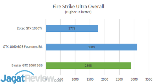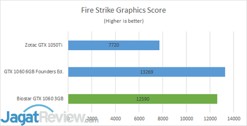Mari beralih ke pengujian performa dari graphics card ini! Seperti biasa, kami menggunakan aplikasi benchmark sintetik 3DMark, dan menjalankan beberapa pengujian di dalamnya, untuk mendapatkan gambaran performa dari Biostar GeForce GTX 1060 3 GB ini. Selain itu, kami juga menggunakan beberapa game untuk mendapatkan gambaran performa dalam bentuk average fps dan min. fps/1% min. fps.