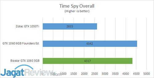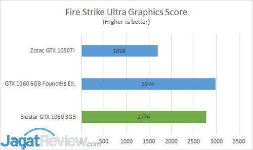 Mengusung CUDA Core dengan jumlah di bawah GeForce GTX 1060 6 GB, wajar bila graphics card Biostar GeForce GTX 1060 3 GB ini menawarkan kemampuan sedikit di bawah. Walapun begitu, jarak keduanya tidak terlalu jauh. Hal ini cukup menjanjikan, mengingat harga GeForce GTX 1060 3 GB seharusnya akan ada di bawah GeForce GTX 1060 6 GB, setidaknya bila harga di pasar tengah normal.