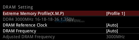 XMP 1 – DDR4-3000, 16-18-18 (CL-TRCD-TRP)