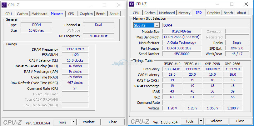 Berikut ini perbandingan kecepatan default dibandingkan saat XMP Profile Aktif: