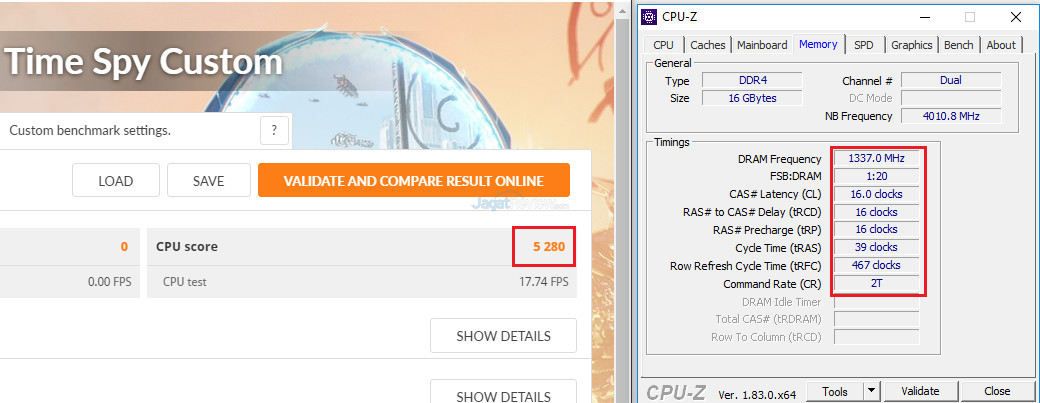 Skor DDR4-2133Mhz default (hanya untuk referensi) – 4255 Memory Score