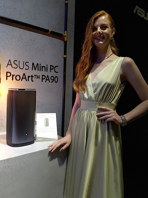 Produk menarik pertama yang kami jumpai adalah Mini PC dari keluarga ProArt, yang disebut sebagai PA90. Mini PC ini hadir dengan desain tabung, dengan ukuran yang tidak terlalu besar, tetapi dibekali dengan spesifikasi yang terbilang tinggi. ASUS menawarkan Core i 8th Gen. dan NVIDIA Quadro di dalam Mini PC tersebut, dengan dukungan Intel Optane Memory. Sesuai dengan namanya, Mini PC ini ditujukan untuk kalangan content creator profesional, untuk mendukung pekerjaan mereka.