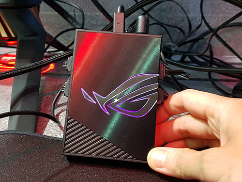 Bicara mengenai RGB LED, ASUS juga memiliki sebuah controller untuk RGB dengan dukungan untuk AURA Sync, yaitu ROG Terminal. Pengguna bisa memasang LED strip ke controller ini, dengan memanfaatkan port yang ada. Menariknya, ROG Terminal ini juga menawarkan ROG Halo, yang bisa menyesuaikan warna LED sesuai dengan ambient tampilan di layar.