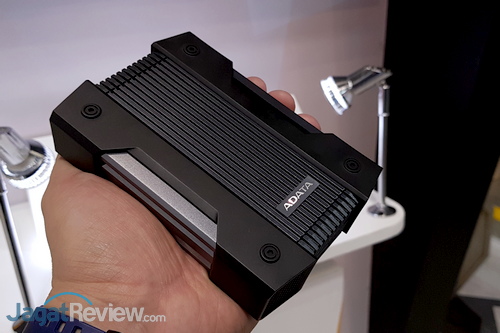 Selain produk-produk di atas, ADATA juga memamerkan beberapa produk baru mereka yang lain, salah satunya adalah HDD eksternal terbaru mereka. Ya, ADATA memang cukup dikenal di dunia HDD eksternal, terlebih lagi untuk lini tahan banting mereka. Kali ini pun, HDD eksternal terbaru mereka, HD830, hadir dengan desain tahan banting, dengan sertifikasi military-grade shockproof, serta heatsink untuk menjaga suhu saat perangkat ini digunakan. ADATA juga menyebutkan bahwa perangkat ini dilengkapi sertifikasi IP68 untuk ketahanan terhadap debu dan air, serta ditawarkan dalam kapasitas 2 TB, 4 TB, dan 5 TB!