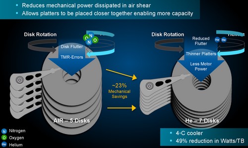 HDD MG07ACA untuk kapasistas 14TB menggunakan 9 buah platter, sedangkan untuk kapasitas 12TB menggunakan 8 buah platter. HDD MG07ACA dengan kedua kapasitas besar tersebut pada menggunakan helium sealed design untuk bisa menggunakan platter tipis dengan densitas yang tinggi. Keuntungan dari menggunakan helium seal pada HDD adalah berkurangnya drag force yang terjadi saat platter berputar. Berkat efek tersebut, daya operasi yang dibutuhkan juga semakin berkurang. Toshiba mengatakan bahwa untuk model 14TB, daya maksimum pada saat melakukan operasi read/write tidak akan melewati 7.6W dan hanya 4.6W pada saat idle.
