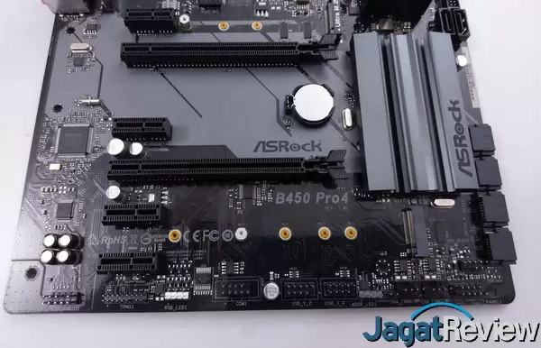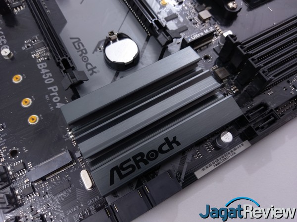 Untuk bagian chipset, ASRock B450 Pro4 ini menggunakan heatsink yang menurut kami cukup besar.