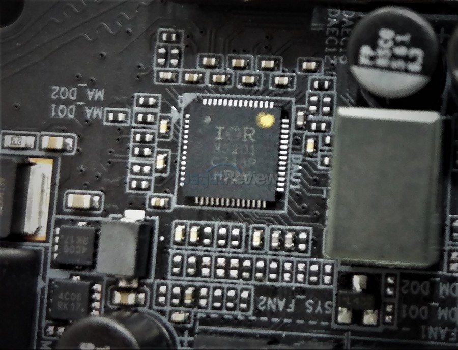 Untuk mengontrol 6 phase CPU VRM dan 2 phase IGP VRM, motherboard ini menggunakan IR35201 yang dijalankan pada konfigurasi 6+1.