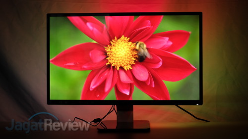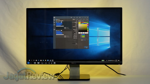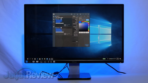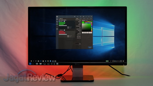 Terkait intensitas cahaya dari LED Strip di paket ini, kami mendapati bahwa intensitasnya terbilang baik. Warna cahaya masih dapat terlihat dengan baik, sekalipun kami menggunakan monitor ini bukan di ruangan gelap. Memang, jarak antara monitor dengan bidang di belakangnya tidak bisa terlalu jauh, karena secara umum LED Strip seperti ini memang tidak didesain untuk intensitas tinggi yang membuatnya bisa mencapai bidang yang jauh. Selain itu, untuk tampilan terbaik, kita tentu saja membutuhkan bidang warna putih di belakang monitor.