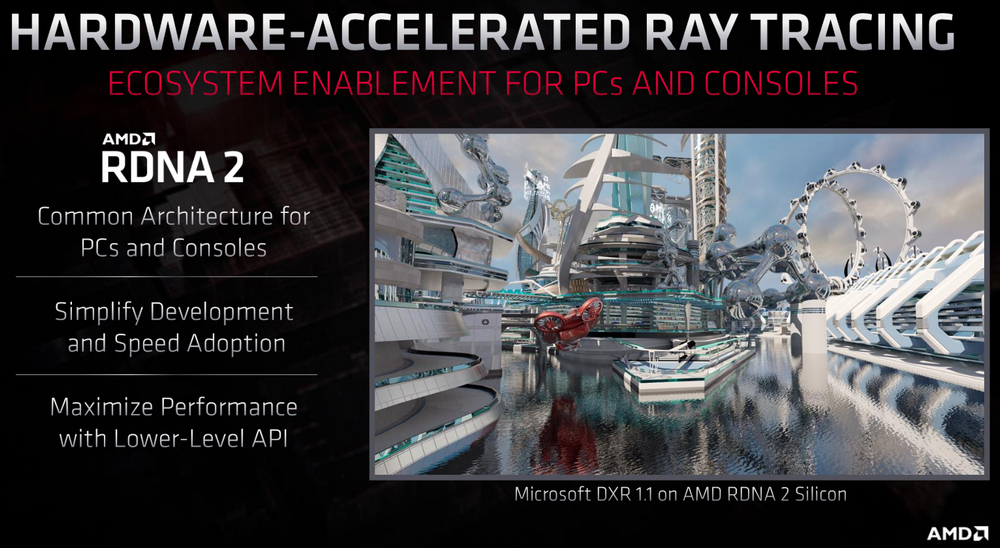AMD menilai bahwa dengan RDNA2 diimplementasikan pada konsol game, pengembangan konten real-time ray-tracing akan mudah dilakukan dan jumlah adopsi game-nya akan relatif tinggi dibanding masa-masa awal ray tracing diimplementasikan.