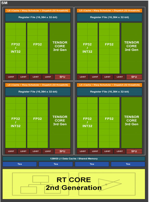 Selain kemampuan SM yang meningkat, RTX 30-series juga mendapatkan RT Core 2nd Gen, dan juga Tensor core 3rd Gen.