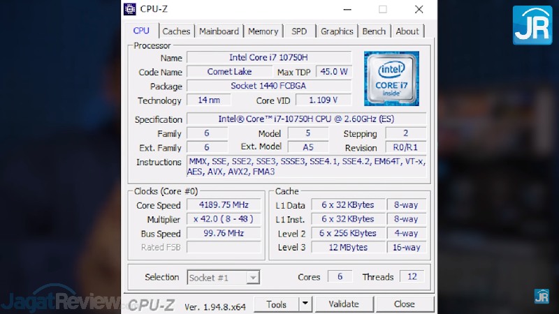 Untuk perangkat Acer Predator Helios 300 yang kami review, laptop ini menggunakan prosesor Intel Core i7-10750H “Comet Lake”, dengan fabrikasi 14nm dan memiliki TDP 45W. Prosesor ini menggunakan konfigurasi 6-Core/12-Thread, dengan Base Clock 2,6 GHz dan Max Turbo Boost di 5,0 GHz, serta mendukung Intel Thermal Velocity Boost (TVB) Frequency. Selain itu juga memiliki 12 MB Intel Smart Cache.
