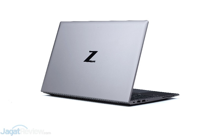 Untuk warna, perangkat ini hadir dengan warna Dark Grey dan Matte Finish, warna khas dari laptop HP ZBook Series. Desain Laptop tampak sederhana dan minimalis tetapi tetap tampak profesional. Logo ZBook berupa huruf “Z” dengan permukaan memantul seperti cermin tampak menghiasi punggung layar.