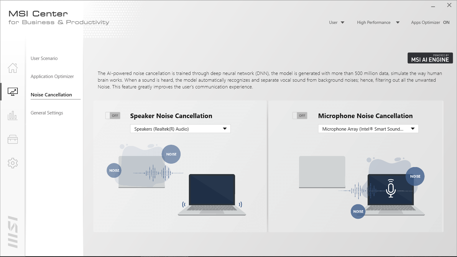 Untuk pengguna yang sering melakukan video conference Terdapat fitur Noise Cancellation yang dapat membantu untuk mengurangi Noise pada Microphone dan Speaker saat digunakan untuk melakukan voice chat/video call.