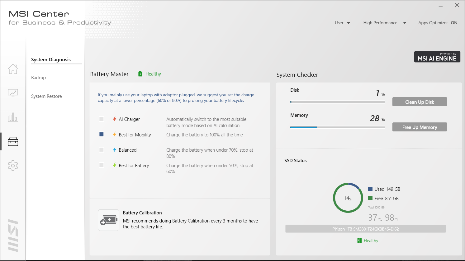 - AI Charger – mengubah mode secara otomatis berdasarkan kalkulasi AI dari MSI