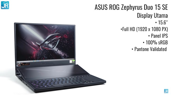 ASUS ROG Zephyrus Duo 15 SE (GX551QM) tentunya merupakan laptop gaming kelas premium dari ASUS yang tipis, dan memiliki dua layar yaitu layar utama dan ScreenPad Plus. Perangkat ini ditenagai dengan jeroan kelas atas, yaitu prosesor AMD Ryzen seri 5000 dan kartu grafis NVIDIA RTX 30-series.
