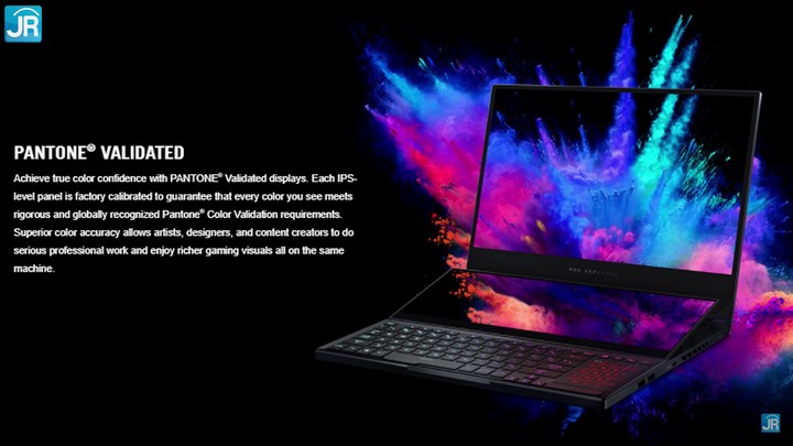 Beralih ke Display, ASUS ROG Zephyrus Duo 15 SE (GX551QM) memiliki layar dengan panel IPS berukuran 15,6 inci beresolusi Full HD (1920 x 1080 piksel). Layar ini memiliki cakupan warna 100% sRGB serta memiliki sertifikasi Pantone Validated, sehingga reproduksi warna dijamin akurat dan sangat cocok digunakan oleh para Content Creator.