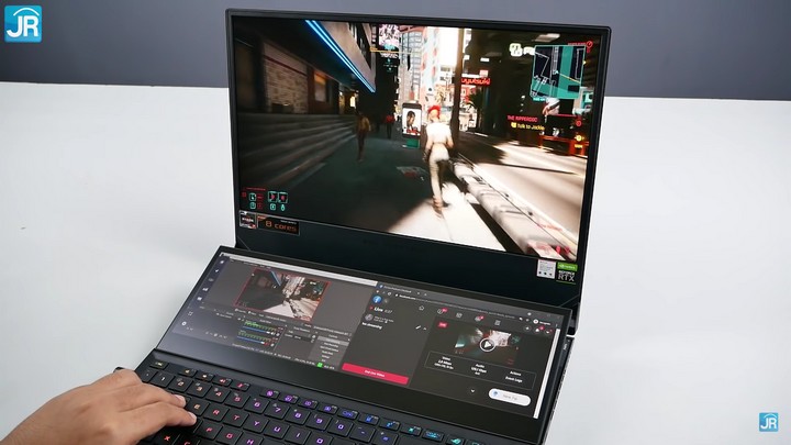 • ScreenPad Plus ini juga sangat berguna bagi para streamer. Streamer dapat memainkan game pada layar utama. Layar kedua digunakan untuk menampilkan preview stream pada software OBS, menampilkan live chat pada kanal stream mereka serta menampilkan tab notifikasi event seperti donasi, tip dan subscribe yang masuk