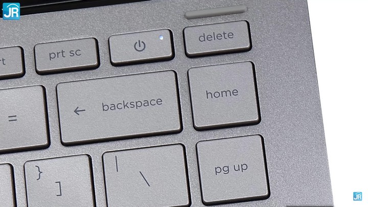 Tombol power menyatu dengan layout keyboard, namun pengguna Tidak perlu khawatir tertekan, karena bukan berada di pojok kanan atas. Pojok kanan atas tetap tombol delete. Seandainya tertekan pun, tidak langsung mematikan laptop secara paksa. Terdapat backlit putih dengan 2 tingkat kecerahan yang dapat diatur menggunakan tombol F4.