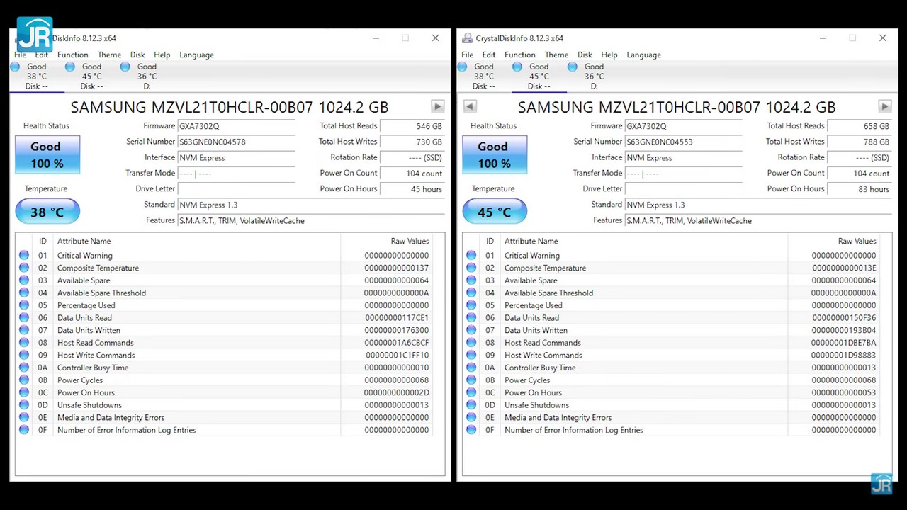 - Menggunakan 2x 1TB SSD PCIe NVMe yang dikonfigurasi RAID 0
