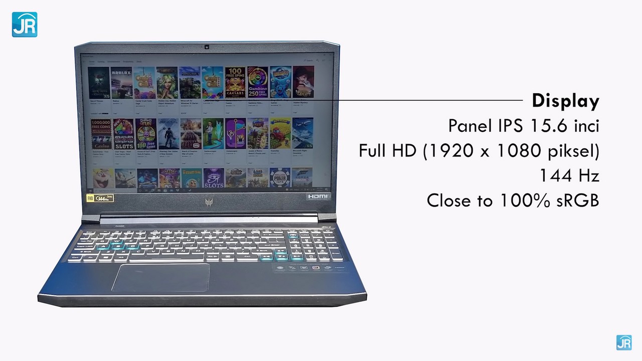 Layar ini memiliki refresh rate 144 Hz, yang pada Unit penjualan memiliki refresh rate di 165 Hz. Ya, keduanya sudah membawa refresh rate yang tinggi khas layar laptop gaming.