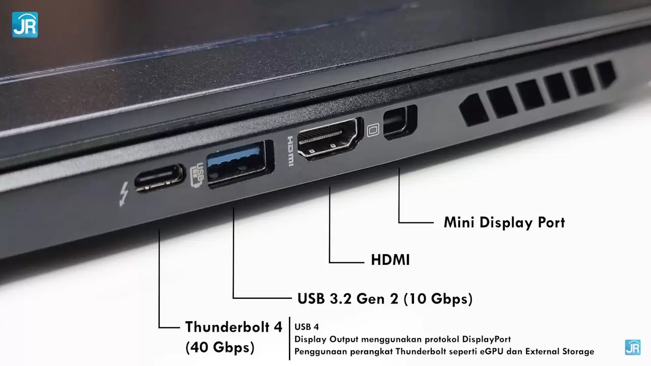 - 1x Thunderbolt 4 (40 Gbps) yang mendukung