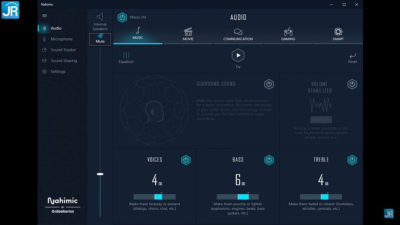 Di aspek audio, laptop ini memiliki 2 Speaker Stereo yang terletak di bawah kanan-kiri laptop. Terdapat software Nahimic Audio untuk mengubah preset audio. Kualitas audionya terdengar cukup lantang untuk sebuah laptop gaming.