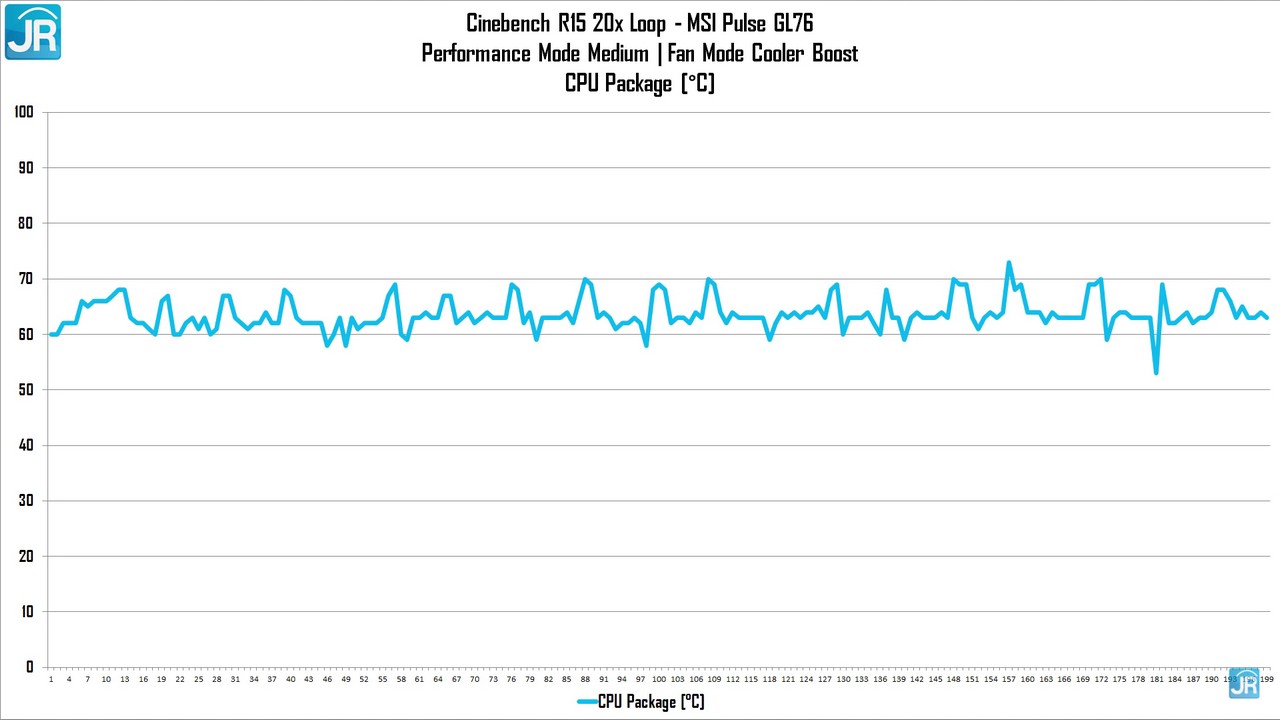Untuk suhu prosesor saat melakukan Cinebench R15 sebanyak 20x, tercatat bahwa: