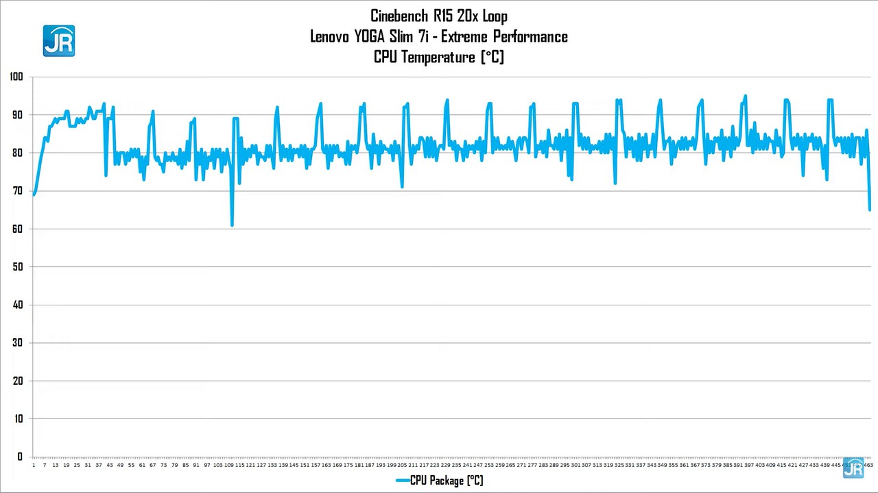 - Di mode Extreme Performance, suhu selalu spike ke kisaran 90-93 derajat setiap awal run, lalu kemudian turun di kisaran 74-86 derajat Celcius