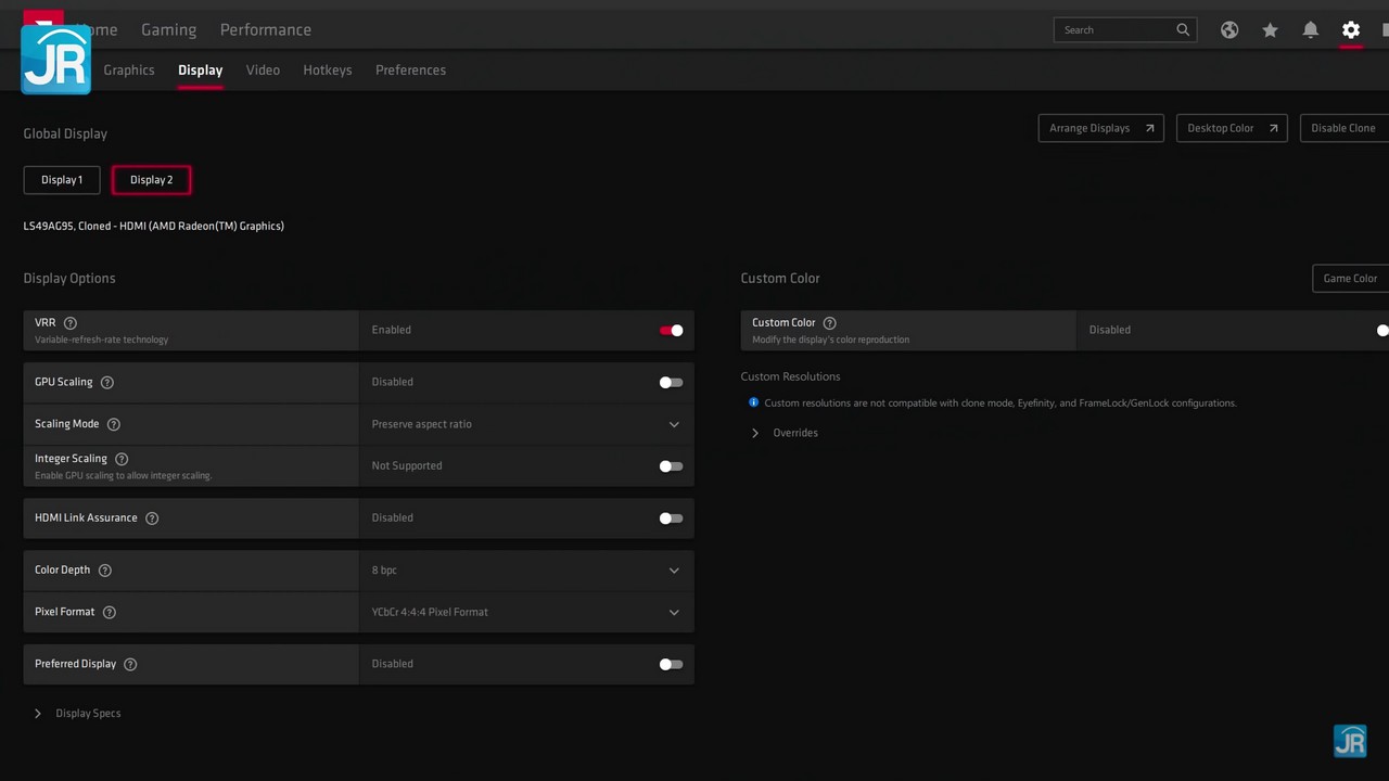 Terdapat juga 3 pilihan refresh rate yang tersedia di monitor ini, mulai dari 60 Hz, 120 Hz dan 240 Hz. Untuk menggunakan refresh rate di 240 Hz, monitor harus terhubung melalui DisplayPort