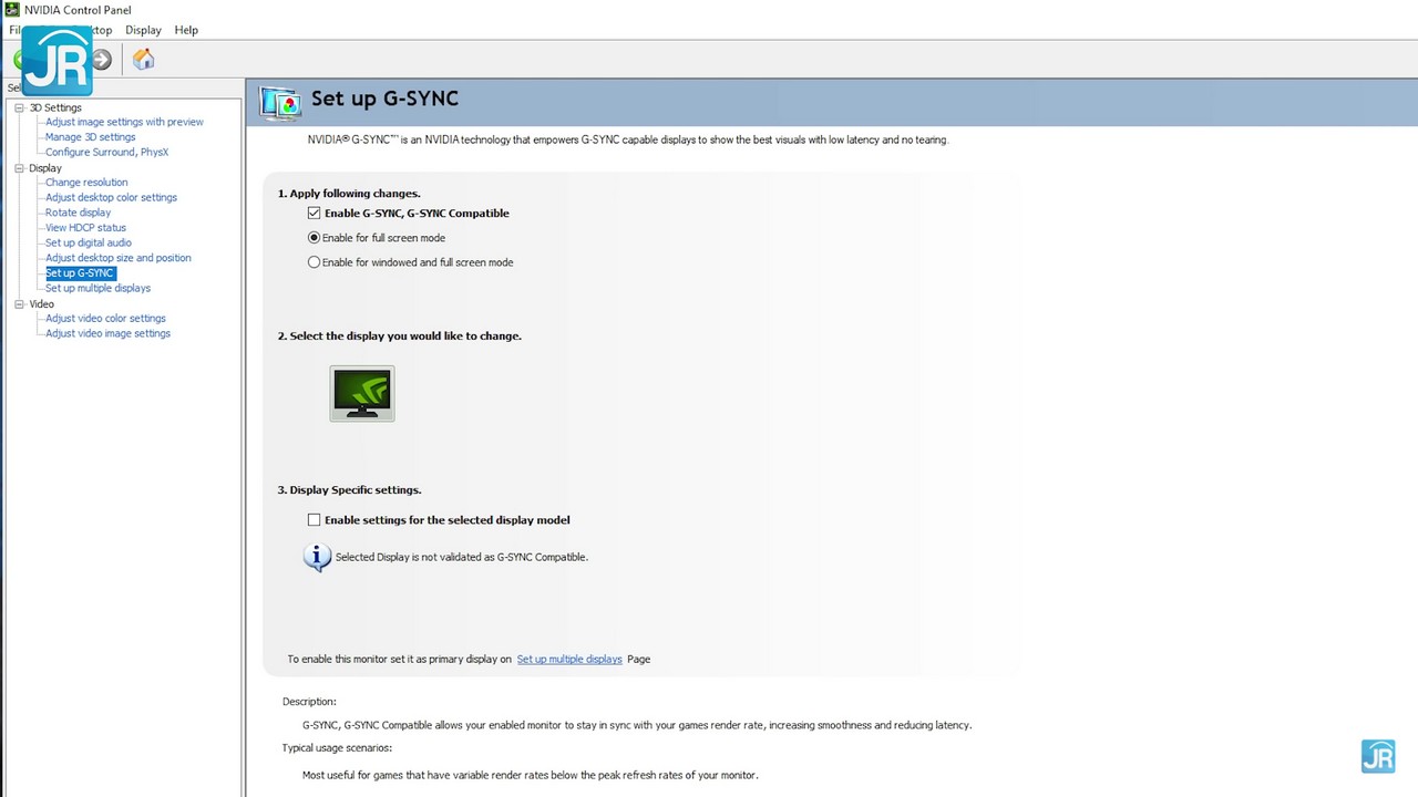 Nah, jika ingin menggunakan G-Sync Compatible, monitor harus terhubung ke PC melalui DisplayPort.
