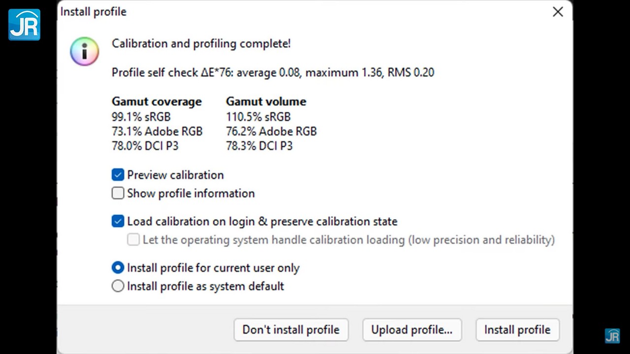- Gamut Volume: 108.5% sRGB, 74.7% Adobe RGB, 76.8% DCI-P3