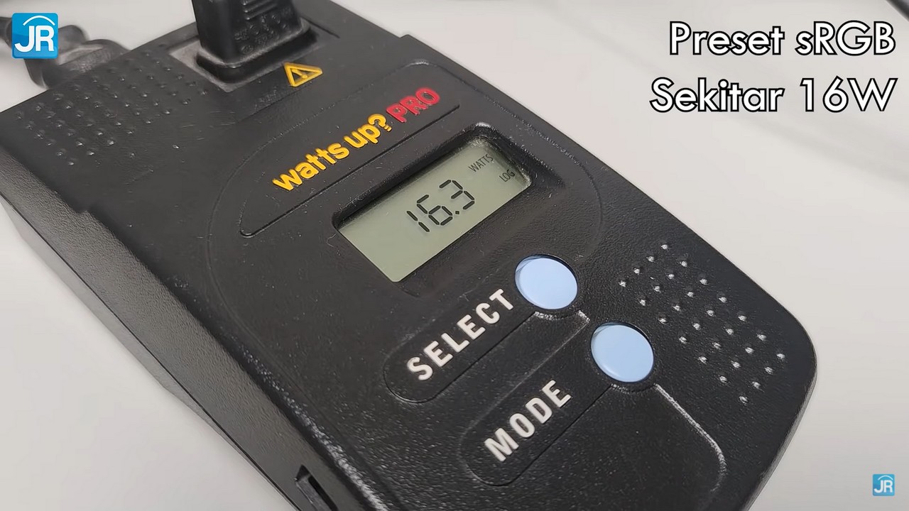 Jadi, konsumsi daya tertingginya berada di sekitar 19 Watt, sedangkan konsumsi daya terendahnya ada pada preset sRGB hanya sekitar 16 Watt, ini termasuk irit banget. Ini setara dengan 1-2 lampu LED ruangan saja.