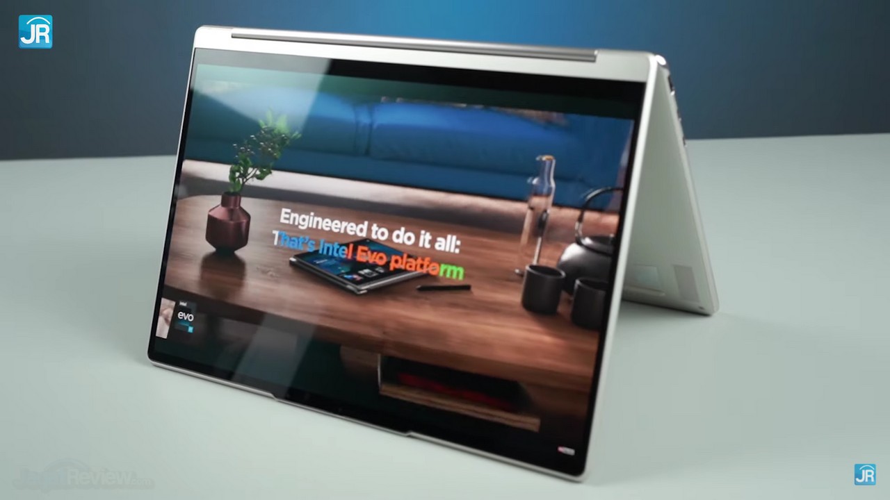 Lenovo Yoga 9i generasi terbaru ini datang dengan form factor Convertible atau 2-in-1. Jadi laptop ini dapat diubah menjadi Tablet dengan memutar layarnya 360°. Jadi laptop ini sudah memenuhi syarat EVO untuk Form Factor 2-in-1.