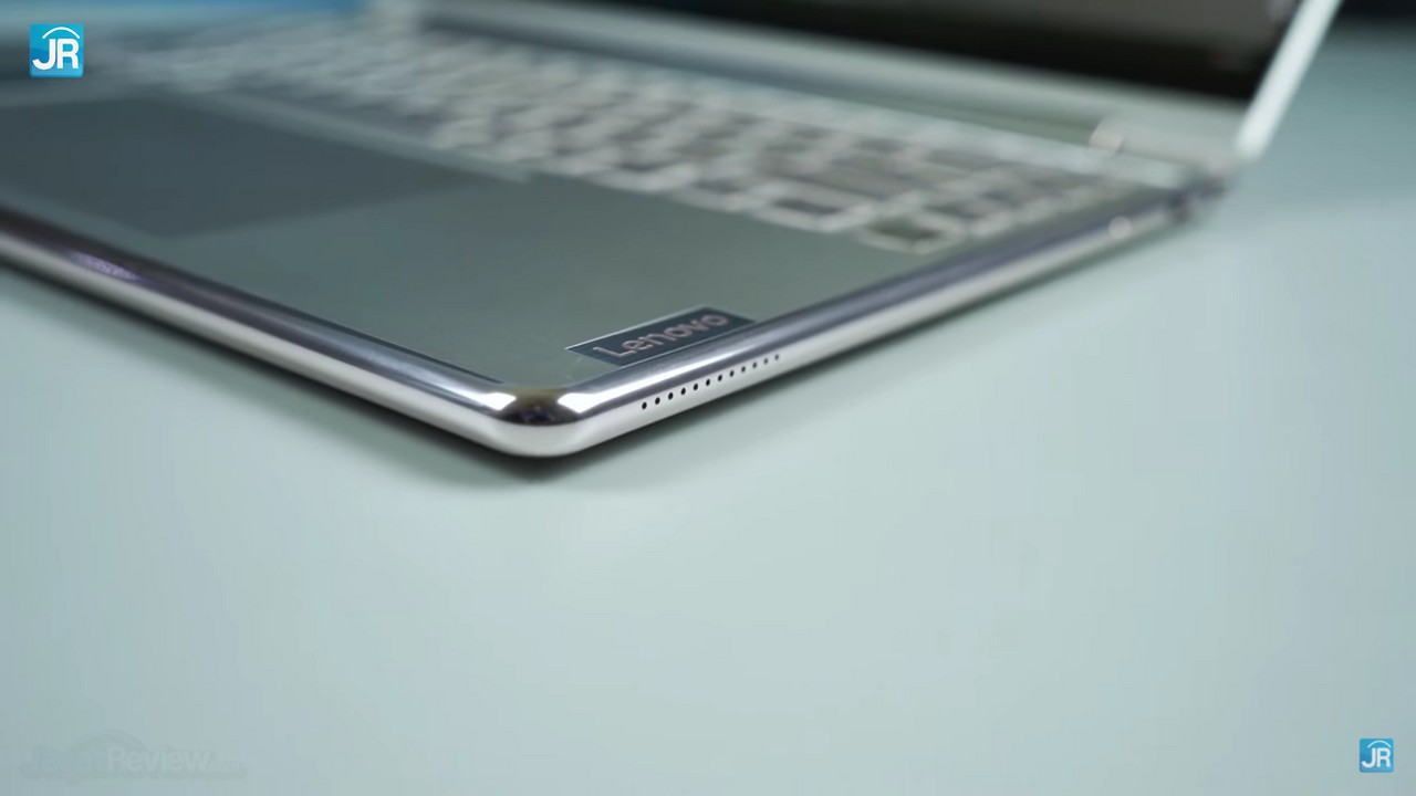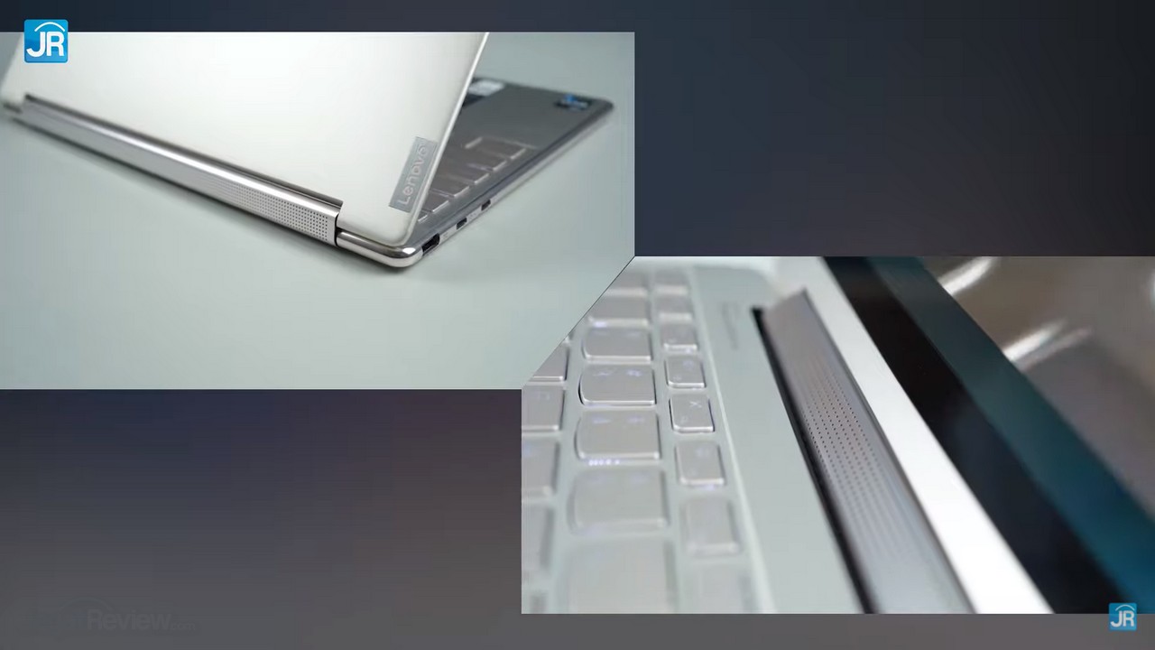Di aspek audio, tidak seperti sebelumnya, Lenovo Yoga 9i generasi terbaru ini menggunakan solusi Audio dari Bowers & Wilkins. Ada empat buah Speaker, dua buah ada di engsel layar atau Rotating Soundbar yang mengarah langsung ke pengguna.