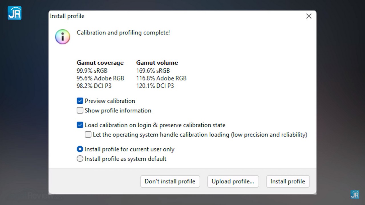Menurut Lenovo panel ini tingkat kecerahannya 400 Nits dengan Color Gamut 100% DCI-P3. Sementara berdasarkan pengukuran alat kami hasilnya: