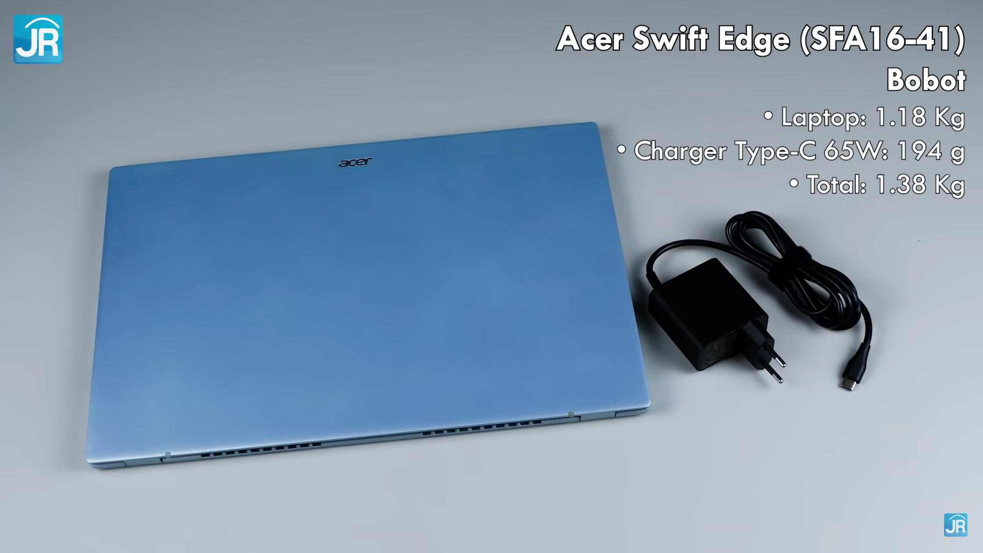 Bobot laptop yaitu sebesar 1.18 Kg, ini sangat ringan untuk sebuah laptop 16 Inci. Chargernya sebesar 194 gram, dan ini adalah Charger Type-C 65 Watt dengan bentuk mirip seperti Charger Smartphone jadi lebih praktis saat dibawa. Walaupun begitu kabelnya tidak dapat dilepas. Jadi total bobot secara keseluruhan yaitu 1.38 Kg.