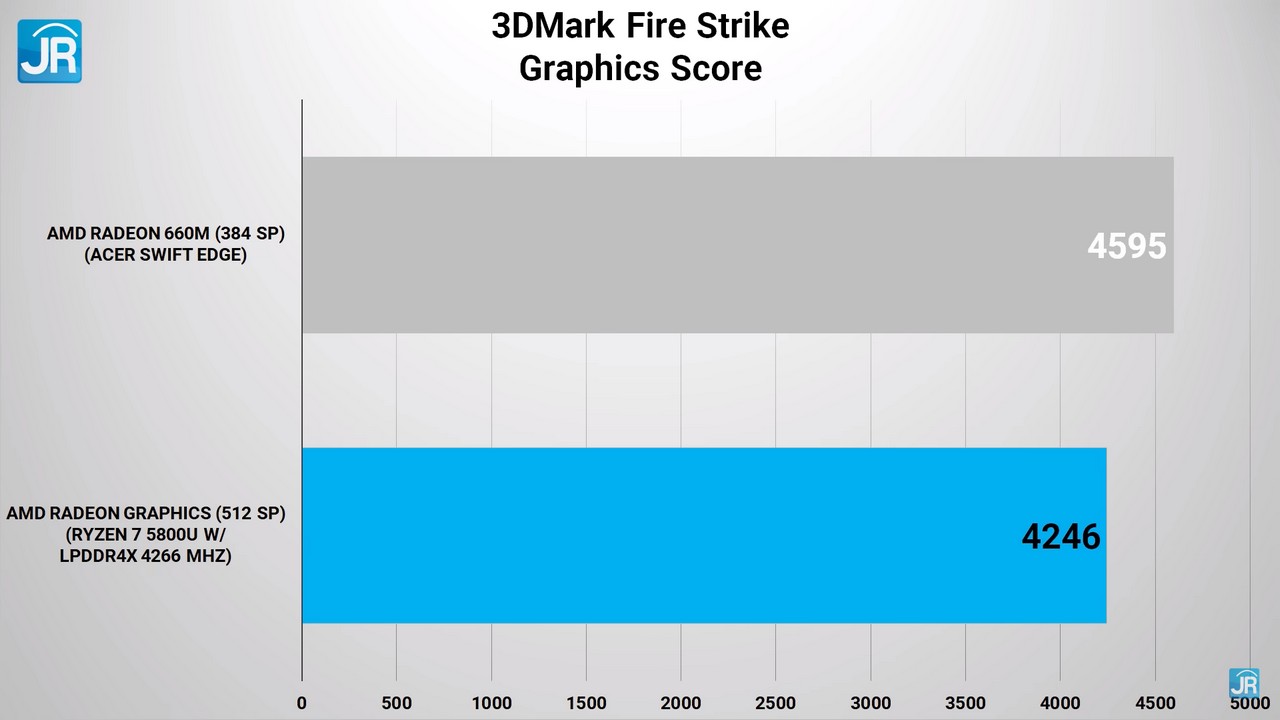 - AMD Radeon Graphics di Ryzen 5800U dengan RAM LPDDR4x 4266 MHz – 4246 poin