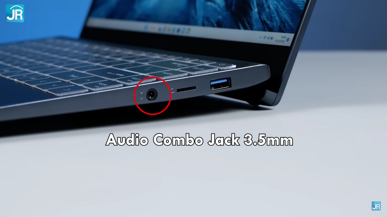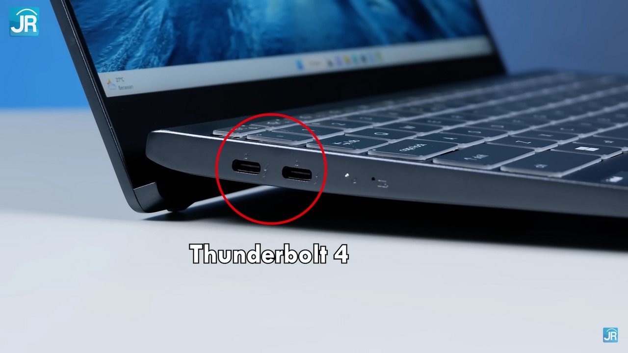 Untuk dimensinya, Panjang 31.9 cm, lebar 21.9 cm, dan tebal 1.59 cm. Sedangkan bobotnya yaitu 1,22 Kg untuk laptop, dan 180gram untuk Charger. Ini charger USB-C, dengan output 65W. Jadi total bobot keseluruhan yaitu 1,4 Kilogram.
