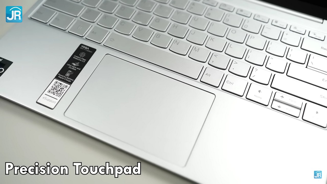 Laptop ini menggunakan keyboard chiclet dengan layout dan feel yang khas dari Lenovo. Ini tergolong nyaman saat digunakan, dan terasa lebih solid jika dibandingkan dengan Yoga Slim generasi sebelumnya.