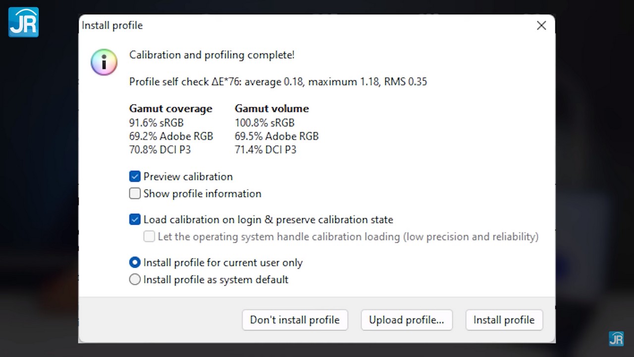 Berdasarkan hasil pengujian kami, gamut coverage di 91.6% sRGB, gamut volume di 100.8% sRGB, dan peak brightness di kisaran 365 nits.