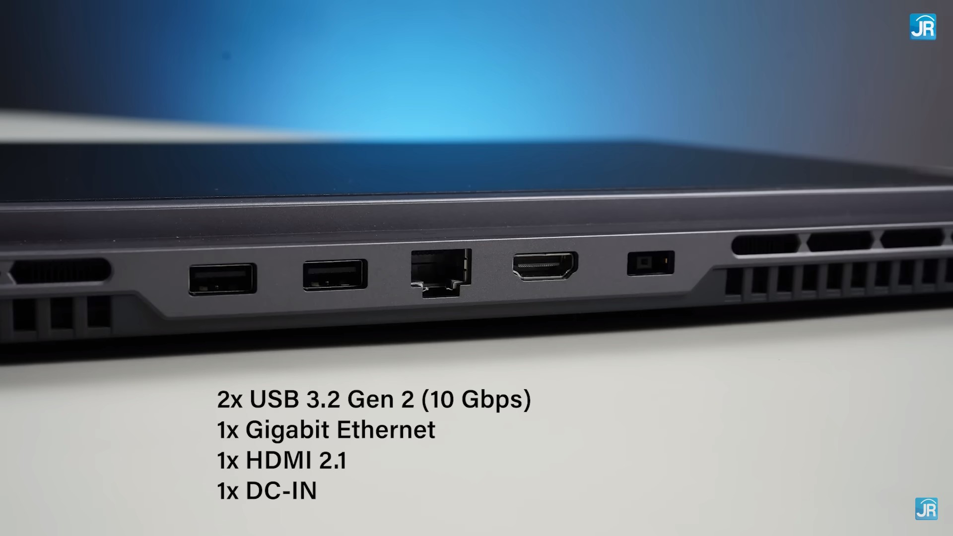 Konektor di sebelah kiri termasuk 2x USB-C 3.2 Gen 2 yang mendukung Display Output dengan protokol Display Port, satu diantaranya mendukung Power Delivery 140 Watt, dan 1x 3.5 mm Audio Combo Jack. Di sebelah kanan terdapat 1x SD Card Slot dan Camera Switch untuk mematikan modul kamera. Di bagian belakang, terdapat 2x USB 3.2 Gen 2, 1x Gigabit Ethernet, 1x HDMI 2.1, dan 1x DC-IN.