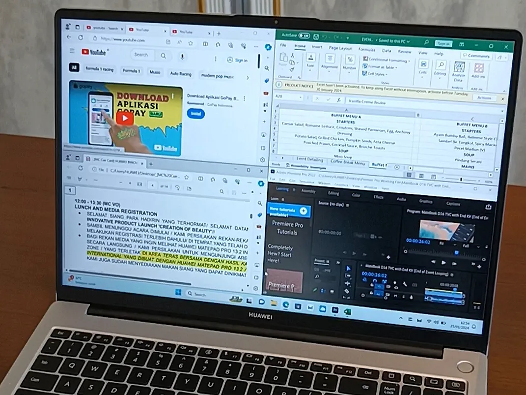 Spesifikasi tersebut diklaim mampu untuk menangani pekerjaan multitasking berat, baik membuka banyak aplikasi Office atau tab Google Chrome, bahkan bisa juga digunakan untuk gaming. Huawei mendemokan bermain Genshin Impact di MateBook D16 ini dan dapat berjalan dengan lancar pada kualitas grafis medium.
