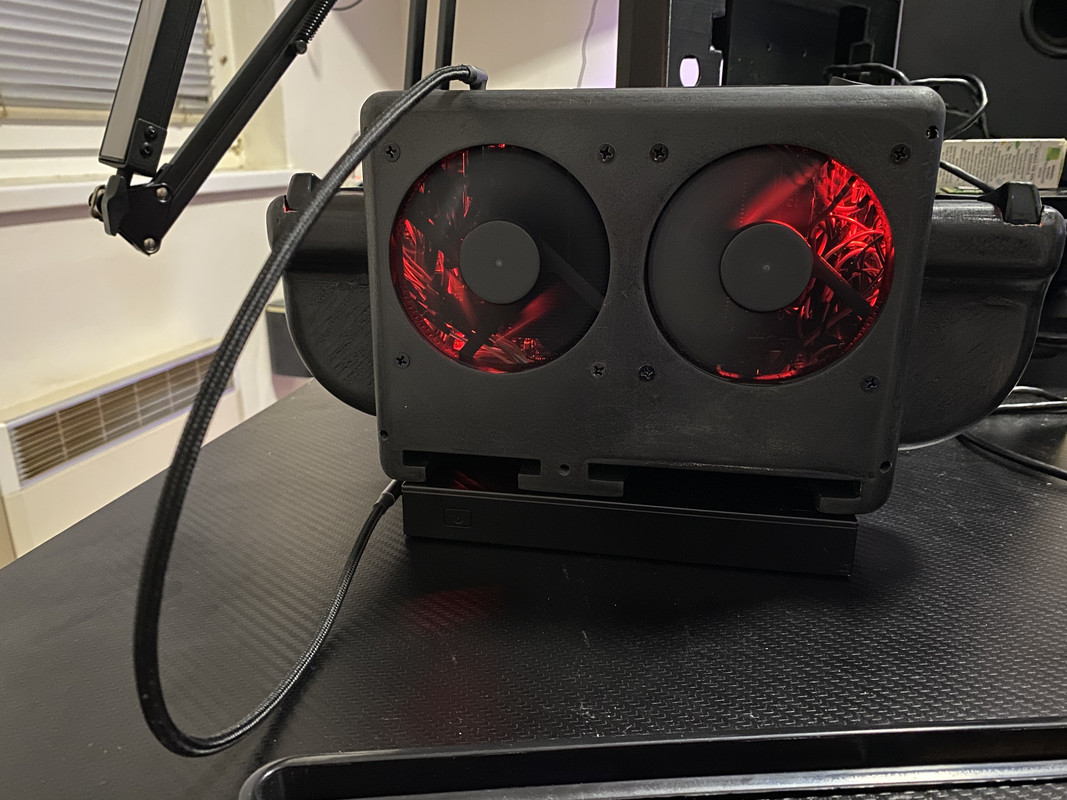 Nah, yang membuat perangkat ini terlihat sangat tebal yaitu karena sistem pendinginannya. Handheld ini dilengkapi dengan dua kipas terintegrasi di bagian belakang, dengan desain yang terbuka, cocok untuk proyek DIY. Ini juga membuat bobotnya menjadi lebih berat. Total bobot dari perangkat ini mencapai sekitar 1,5 Kg.