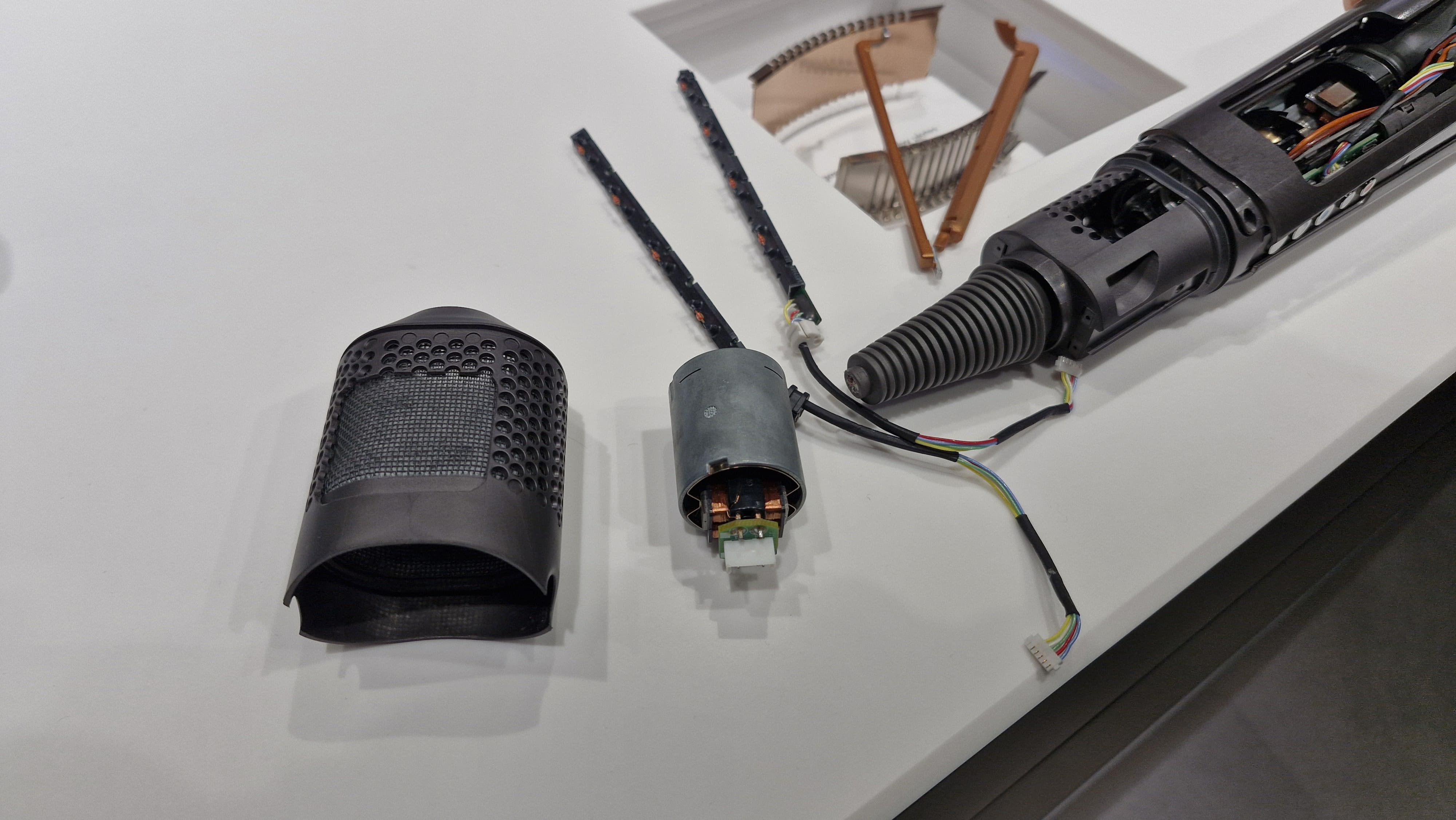 Dyson Airstrait Straightener menggunakan mesin Hyperdymium yang digunakan pada beberapa produk Dyson Hair Care. Berukuran 27mm, mesin ini cukup kuat dengan kecepatan 106.000 rpm,dengan tekanan udara sebesar 3,5kPa yang dapat mengeringkan dan meluruskan rambut secara bersamaan.